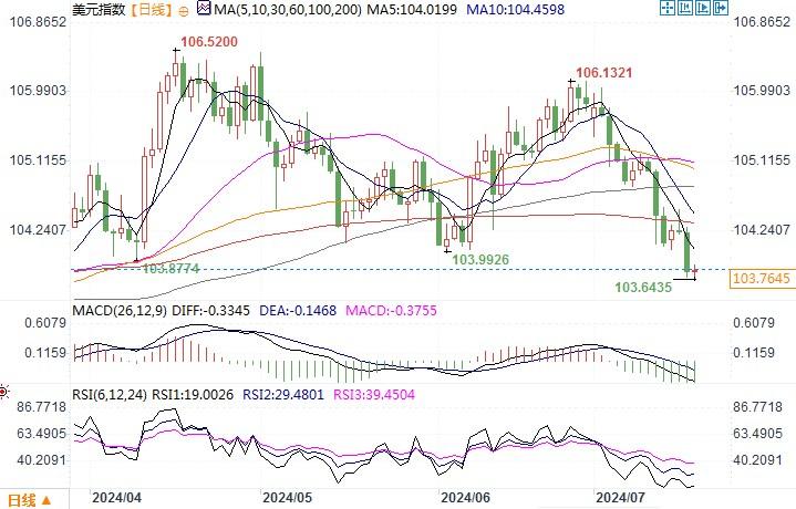 美元指数日线图来源:易汇通北京时间7月18日13:36 美元指数 报 103.75。