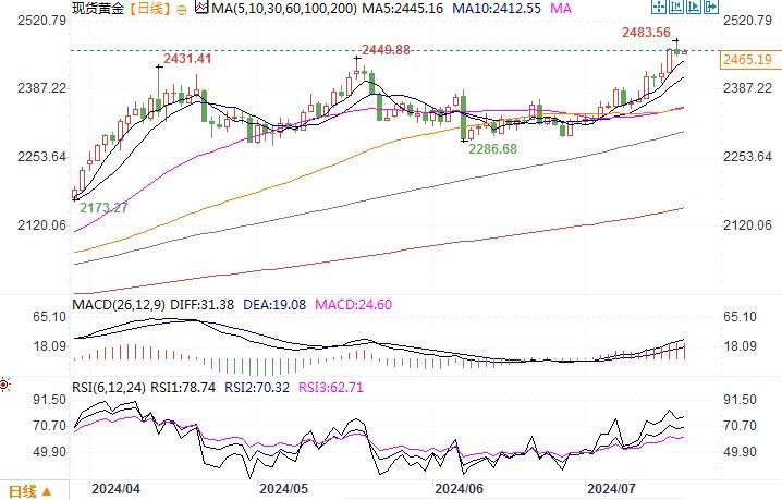 现货黄金日线图来源:易汇通北京时间7月18日11:13 现货黄金 报 2467.19 美元/盎司