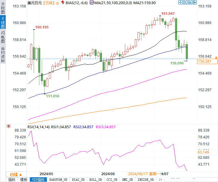 从技术面来看,日元兑美元的汇率在近期出现了显著的波动。美元兑日元JPY=EBS最新下跌1.22%,报156.34日元,创下约一个月以来的最低点。欧元兑日元EURJPY=EBS也下跌了0.9%。这种波动性在一定程度上反映了市场对日本当局干预的预期。