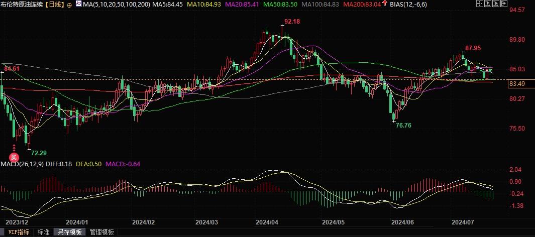 布伦特原油日线图北京时间7月19日13:40,布伦特原油价格报83.50美元/桶