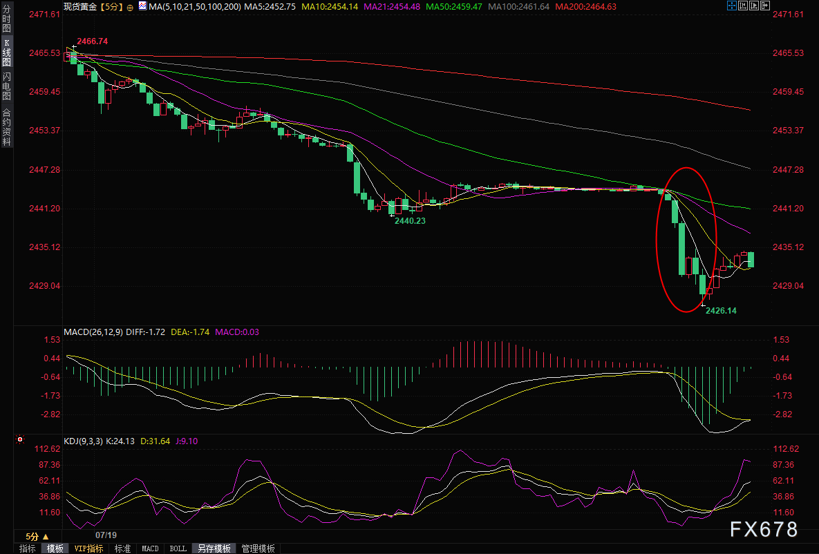 周五(7月19日)亚市早盘,现货黄金短线一度跳水近20美元至2426.14美元/盎司附近,目前交投于241.79美元/盎司附近。