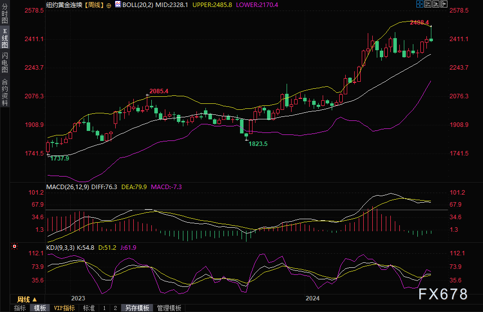 上周金价开盘走强,并成功冲高至每盎司 2480 美元以上的新高。然而,随着市场回吐所有涨幅,金价三周来首次收跌,看涨势头迅速消退。