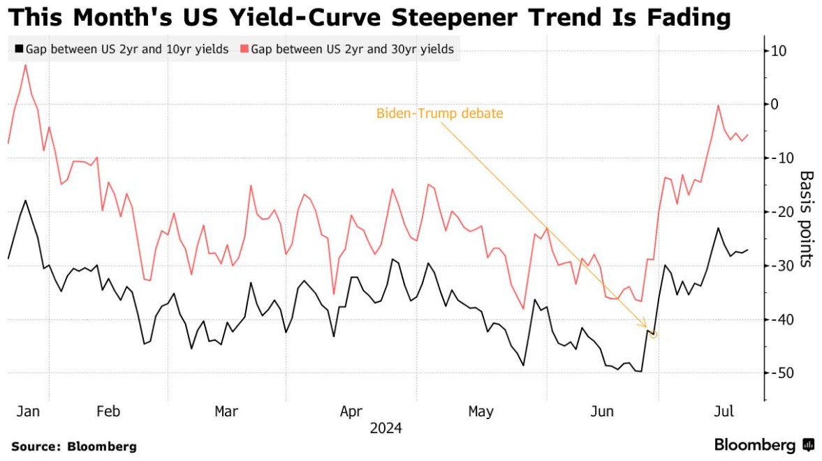 上周末美国国债市场的交易显示,投资者已经开始为总统拜登放弃竞选连任的决定做准备。
