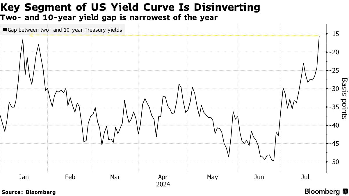 彭博社指出,2年期、10年期美国国债收益率的差距缩小至约14个基点,为2023年10月以来的最小差距。
