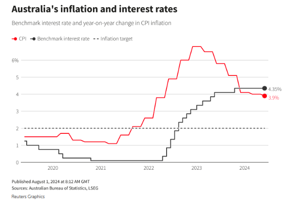 周三公布的低于预期的核心通胀数据,可能暂时改变了澳洲联储原本打算转鹰的想法。市场此前曾预计澳洲联储将在8月5日至6日的政策会议上存在微弱的降息可能,但现在这一可能性已不复存在。交易员们目前预计,到年底,澳洲联储将利率从目前12年来的最高水平下调的可能性约为70%。
