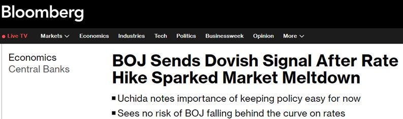 他表示:“与欧洲和美国的政策升息过程不同,日本经济并不处于央行如果不以一定速度提高政策利率就可能落后于曲线的情况。因此,在金融和资本市场不稳定的情况下,央行不会提高政策利率。”