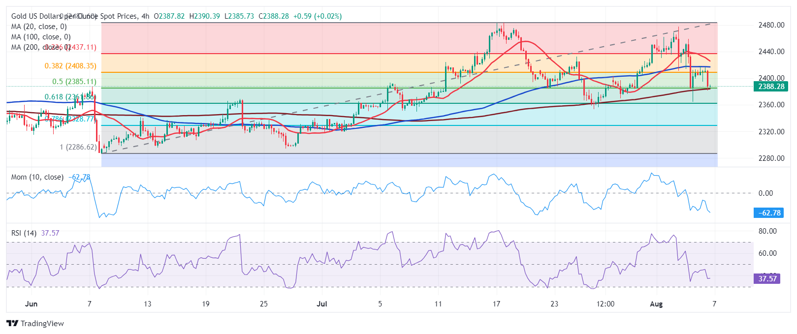 周三(8月7日)亚市盘中,美元维持日内涨势,目前位于103.30附近;现货黄金维持跌势,目前金价交投在2385美元/盎司附近。FXStreet首席分析师Valeria Bednarik撰文,对黄金技术前景进行分析。