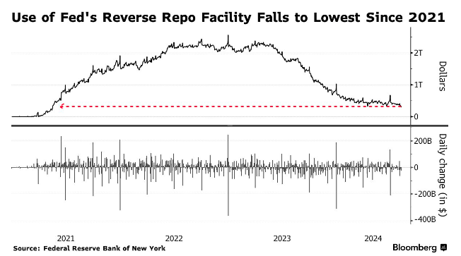 在近来金融市场剧烈动荡的背景下,一些华尔街人士警告称,RRP使用量下降可能表明过剩流动性已从金融体系中消除,并且银行准备金余额没有央行政策制定者认为的那么充足。