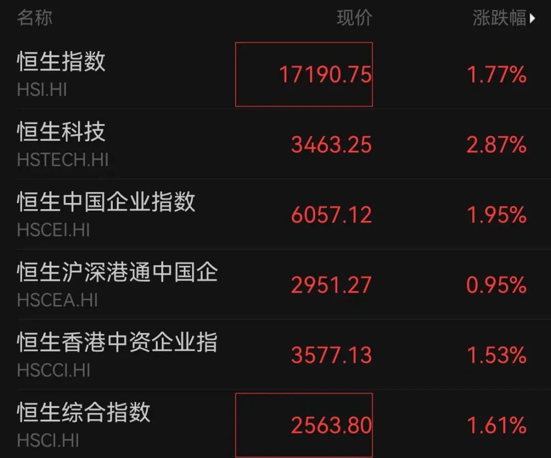 今日,港股持续走高,恒生指数盘中涨幅超3%,恒生科技指数现涨2.87%。科技、原材料、内房、汽车股持续走强。