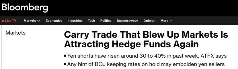 美国彭博社周五(8月16日)报道称,两周前,以日元为中心的热门套利交易经历了平仓风暴,但现在似乎正在悄然卷土重来。