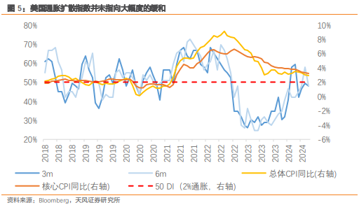 最后,天风证券观察到基于四级分项的通胀扩散指数也并未指向大幅度的缓和,对未来去通胀的期待或许还得再低一些。