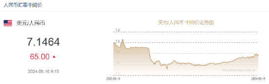 8月16日,人民币中间价报7.1464,下调65点,上一交易日中间价报7.1399。