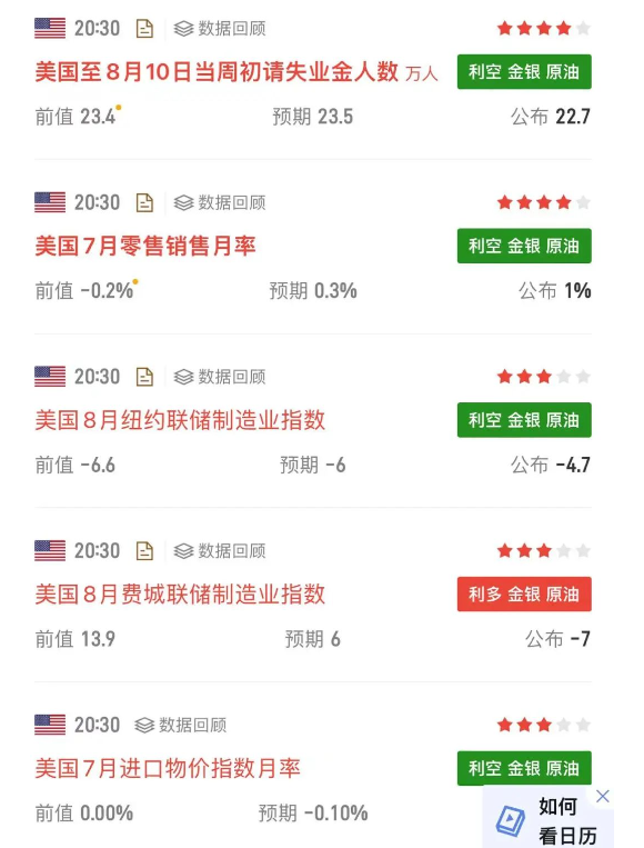 此外,美国劳工统计局公布数据显示,美国8月10日当周首次申请失业救济人数22.7万人,为五周以来最低水平,低于预期的23.5万人,也低于前值23.3万人。