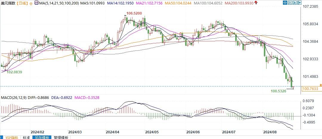 美元指数日线图北京时间8月26日14:00,美元指数报100.72