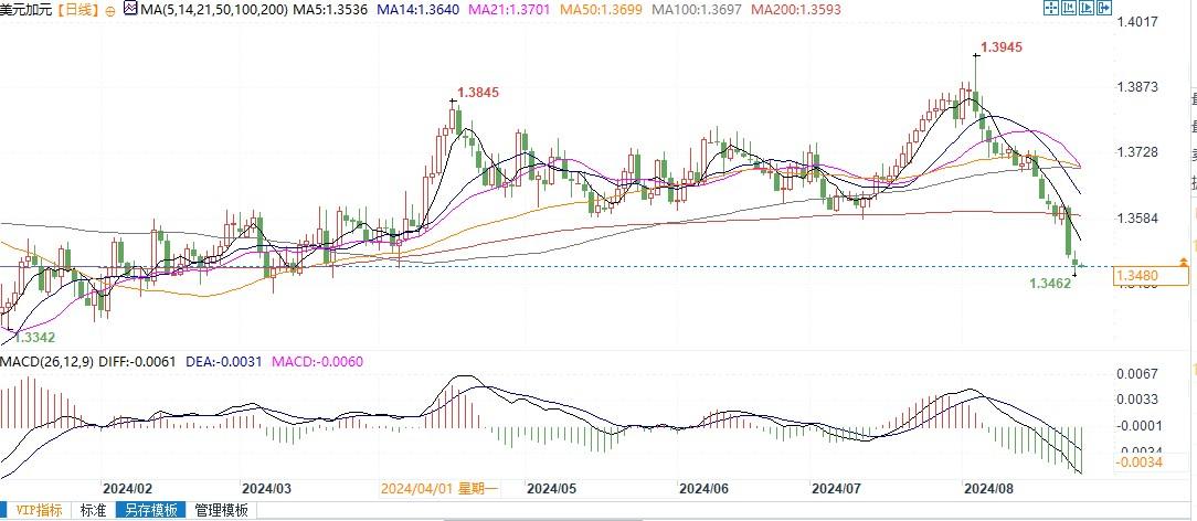 美元兑加元日线图北京时间8月27日11:23,美元兑加元报1.3480/82