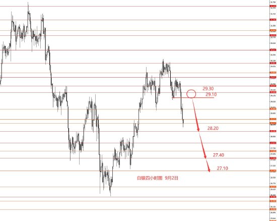 白银上周承压下午,最低28.20也快到了。从图形来看,白银后市长线看涨,后市长线可逢低做多白银。本周大概率还是以震荡为主,下方强支撑26.70重点关注。本周白银继续区间震荡或震荡下行的概率较大些,操作建议:29.10-29.30附近做空白银,止损29.80,目标看向28.20,再看向27.80和27.40和27.10附近,下方企稳再做多。控制仓量,严格止损。