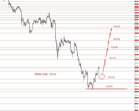 9月2日,美指上周正如预期100.50附近得以支撑向上运行,周图收阳柱。从图形来看,报价再次收回至101.70区域,前期大框架思路延用,本周看多美指,先按反弹先做,上方重点关注104.00区域强阻力,若能上破再关注106.00一线,若承压再灵活处理。本周操作建议:101.10-101.30附近做多美指,止损100.40,目标看向102.20,再看向102.80和103.20和104.00附近。控制仓量,严格止损。