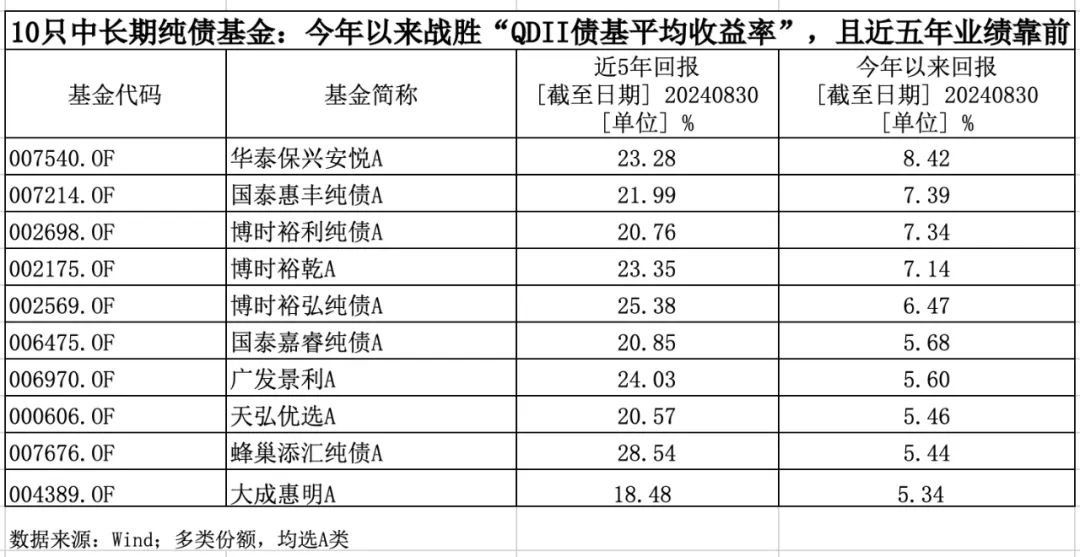 司令提供一种思路,挑选今年以来战胜“QDII债基平均收益率”,且长期业绩出色的国内纯债基金。