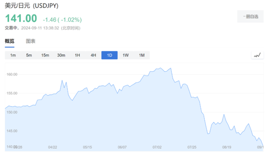 日元兑美元拉升至141,日内涨超1%,已抹去年内跌幅。自7月3日创下161.95的低点以来,日元一直处于升值趋势,这一反转主要由于市场预期美日利率差将进一步缩小。