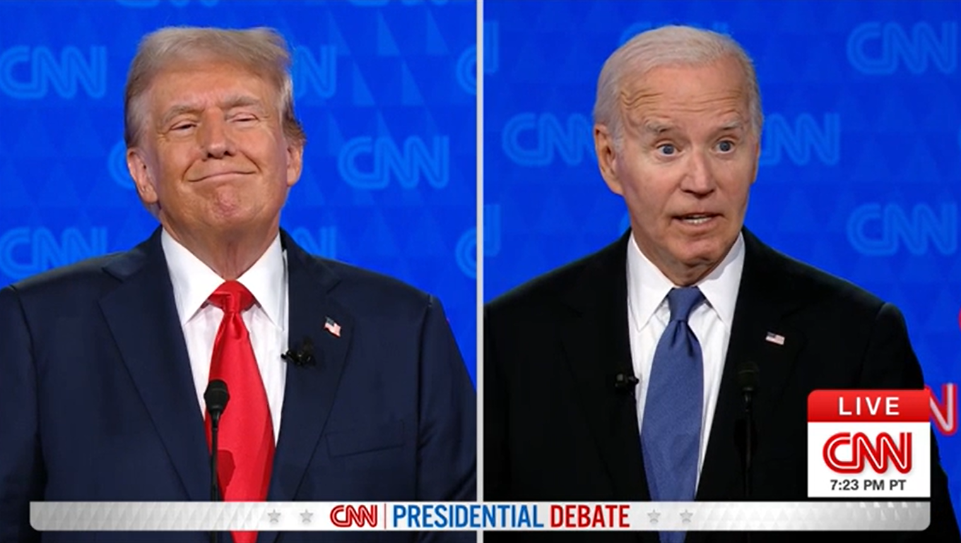 在此次辩论中,两位候选人讨论了经济、堕胎权、移民问题、巴以冲突、俄乌冲突、阿富汗问题、气候变化等多方面议题。