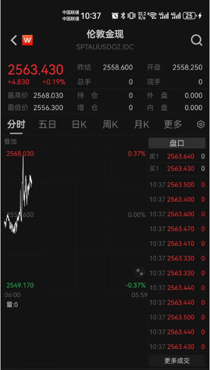 截至记者发稿,现货黄金价格经过短暂冲高回落后,价格重新升至2560美元/盎司上方,报2563.43美元/盎司。