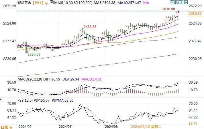 现货黄金日线图来源:易汇通北京时间9月23日13:03 现货黄金 报 2629.86 美元/盎司