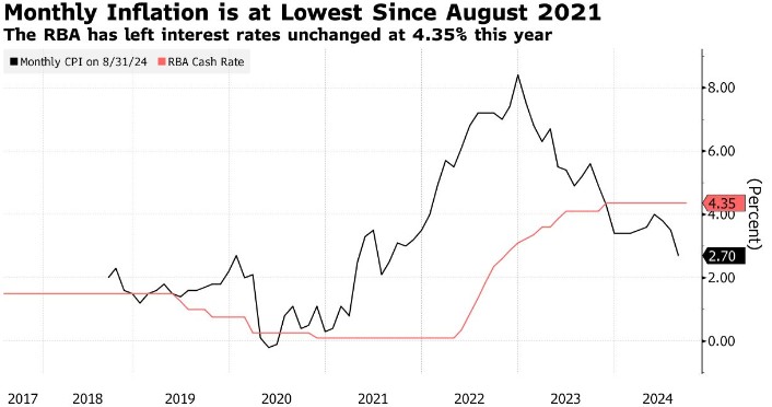 澳洲联储今年维持利率不变,同时强调总需求仍超过经济的供给能力。该央行的预测显示,核心CPI要到2025年末才会回到目标区间。澳大利亚财政部长吉姆·查尔默斯对周三的结果表示欢迎,他说,尽管月度数据可能会“跳跃”一点,但数据的温和“非常令人振奋”。