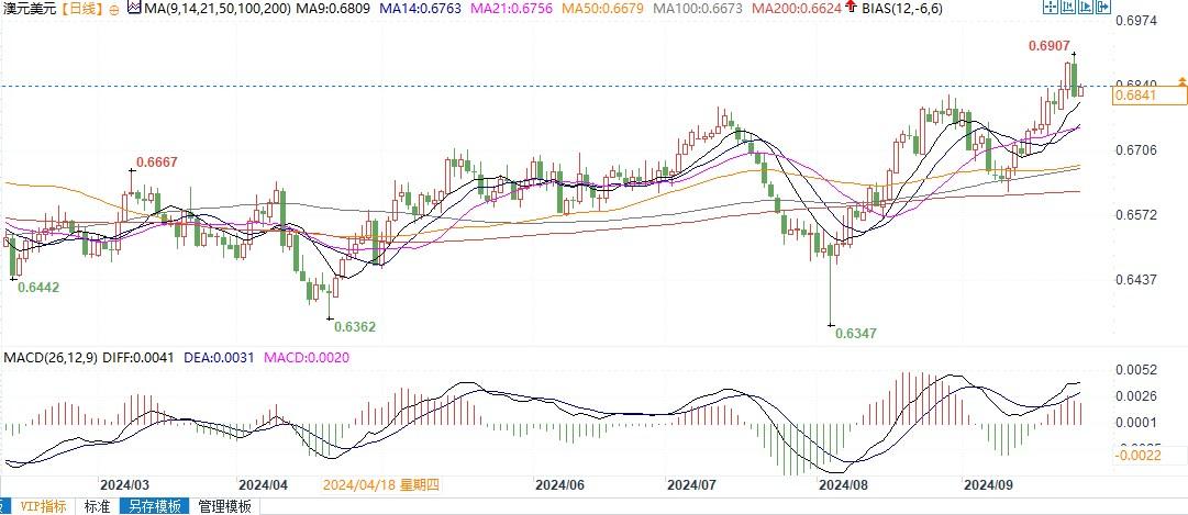澳元兑美元日线图北京时间9月26日11:03,澳元兑美元报0.6840/41
