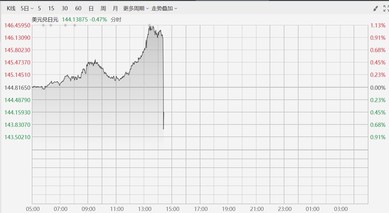 格隆汇9月27日|美元兑日元USD/JPY跳水,失守144,日内跌幅0.67%。