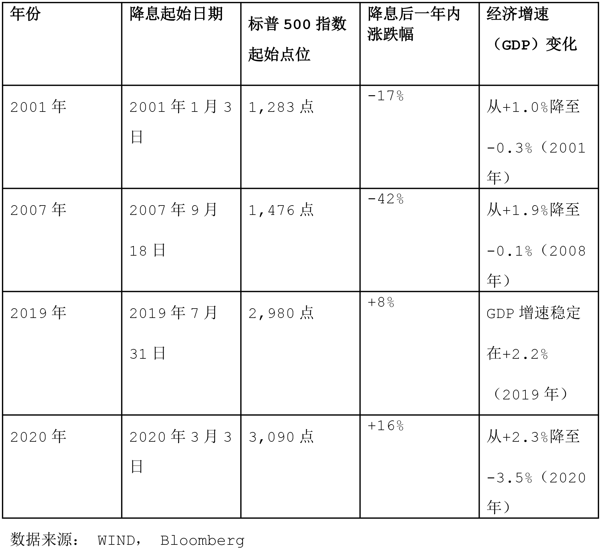 美联储在2015年至2018年间将利率从0.25%提高至2.5%,以正常化货币政策。2019年7月,美联储出于对全球经济放缓和贸易不确定性的担忧,开始预防性降息。此次预防性降息提振了市场信心,普遍认为美联储的行动将支持持续的经济扩张。同时,企业盈利相对稳健,科技等行业表现强劲,而随着中美贸易谈判取得进展,贸易紧张的局势也得到缓和,降低了市场不确定性。标普500指数在2019年全年上涨约29%,从年初的2,507点升至年底的3,230点,创下新高;纳斯达克指数全年上涨约35%,从6,635点升至8,973点。时任美联储主席杰罗姆·鲍威尔(Jerome Powell)表示,降息是为了“维持经济扩张”。当时高盛集团的经济学家认为,预防性降息有助于缓解贸易不确定性带来的压力,支持了股市的上涨。