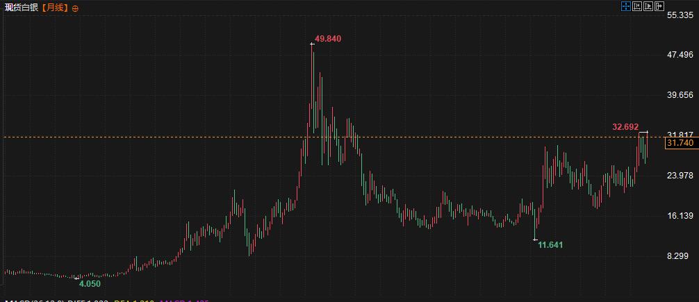 现货白银价格周四尾盘报约每盎司32.03美元,盘中曾触及2012年12月以来最高32.71美元。白银既是一种避险投资品,也是工业应用中的一种关键原材料,今年迄今涨幅已超过35%。