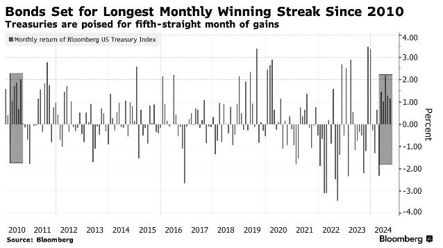 财联社9月30日讯(编辑 潇湘)随着美联储力求经济实现软着陆之际,可能在今年累计降息100个基点,美国国债当前也正水涨船高极有希望创下14年来最长的月线连涨纪录。