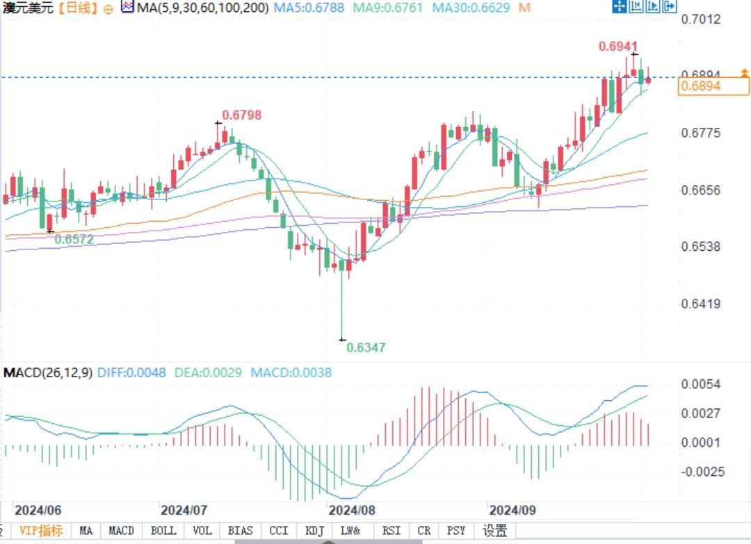 澳元兑美元日线图北京时间10月2日13:00,澳元兑美元报0.6890/91