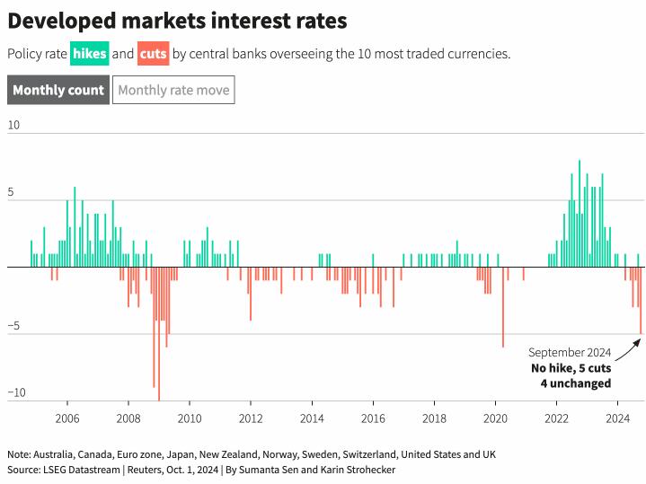 业内最新的统计显示,以美联储为首,发达经济体央行在9月份祭出了自新冠疫情暴发伊始以来最大规模的降息举措。