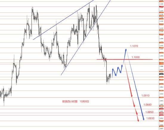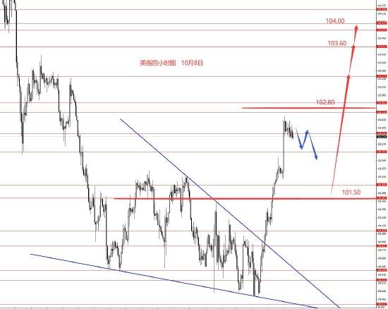 10月8日,美指上周正如预期向上反转,最高102.70附近。从图形后市继续向上运行的概率较大些,只是这一波拉涨波幅较大,短时间内需要修整后才能继续。本周初关注上方102.80强阻力,在以下震荡盘整或向下小幅回调的概率较大些,下方重点关注101.60强支撑,以上还是偏看涨.今日暂无具体操作建议,等待图形修整到拉后,方可再进场继续做多,九月框架思路继续延用即可。