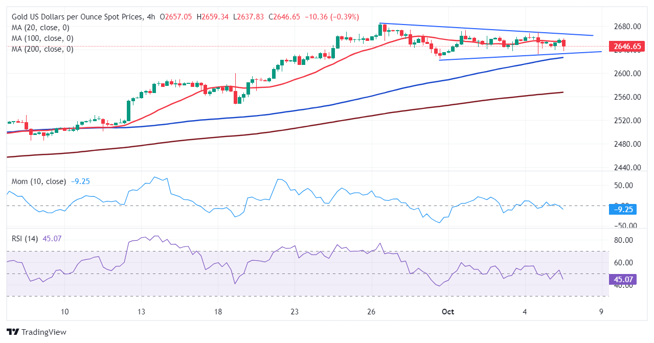 周二(10月8日)亚市盘中,现货黄金自2648美元/盎司附近水平短线突然快速下跌,最低触及2633.68美元/盎司,目前交投于2639.56美元/盎司附近。FXStreet首席分析师Valeria Bednarik撰文,对黄金技术前景进行分析。