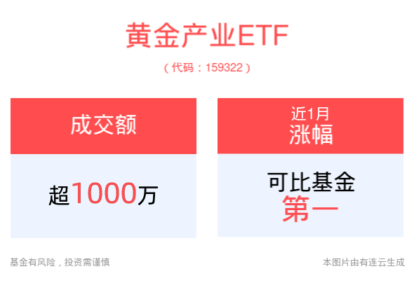 黄金产业ETF紧密跟踪中证沪深港黄金产业股票指数,中证沪深港黄金产业股票指数从内地与香港市场中,选取50只市值较大且业务涉及黄金采掘、冶炼、销售的上市公司证券作为指数样本,以反映内地与香港市场中黄金产业上市公司证券的整体表现。