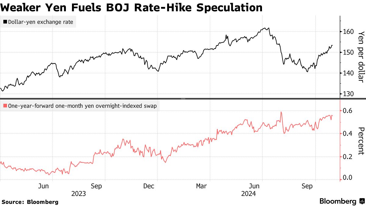 “关键看点在于植田和男行长是否会发出政治不稳定带来的风险,”盛宝银行驻新加坡首席投资策略师Charu Chanana表示。“日本央行推迟加息的风险只会给日元带来更多压力,而日元已经因美国收益率上升和美国大选风险而承受压力。”