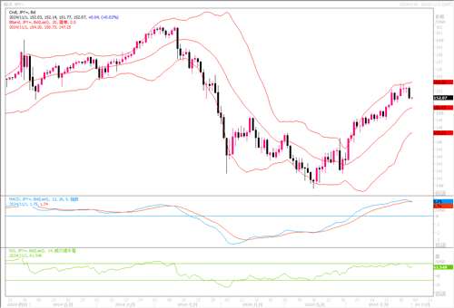 周四(10月31日),美元兑日元下跌0.8%,收盘报152.03。周四,日本央行维持超低利率不变,但表示美国经济的风险有所减弱,这表明再次加息的条件正在成熟。与周四会议前的讲话相比,日本央行总裁植田和男的讲话也没有那么鸽派,他之前说央行“有能力”花时间仔细研究美国经济不确定性和金融市场动荡等风险带来的影响。在日本央行的鸽派基调不及预期之后,美元兑日元承压出现大幅回落。与此同时,周四美国商务部的报告显示,美联储看重的通胀指标--个人消费支出(PCE)物价指数9月同比增幅为2.1%,低于8月份向上修正后的2.3%。9月份美国消费者支出增幅略高于预期。交易员周四押注,美联储下周可能继续将美国短期借贷成本下调四分之一个百分点,期货合约显示下周降息25个基点的可能性为94.7%。在美元最近几周走强后,交易商趁机获利了结。接下来,市场的目光将紧盯周五美国10月份的非农就业数据,若就业增长低于预期,伴随日本央行态度略转鹰,日元短期内存在回升的基础。