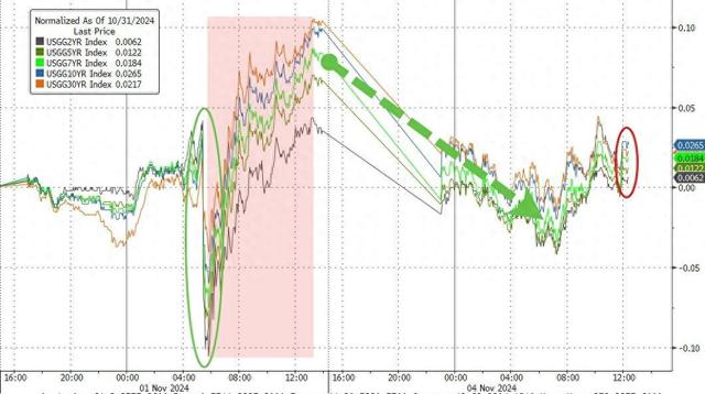 Bryn MawrTrust的固定收益部主管Jim Barnes则指出,债券市场正试图在大选前根据自身对谁会胜出的预期进行布仓。近几日唯一明确的一点是,对特朗普胜选的押注减少了,对哈里斯胜选的押注增加了。我们也对收益率进行了一些重新定价,根据市场的布仓情况,收益率(的上涨)肯定会稍作喘息,不过引发收益率向任何一个方向发展的催化剂,仍将是投资者对大选结果的预期。”