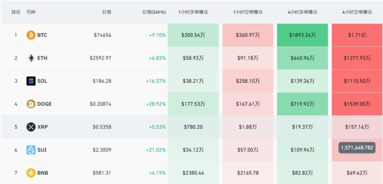 今天,虚拟货币大爆发。根据CoinMetrics的数据,这一旗舰加密货币的价格一度触及75000美元的历史新高。最新价格上涨9%至74656.00美元。最近24小时,共有101013人被爆仓,爆仓总金额为4.75亿美元。