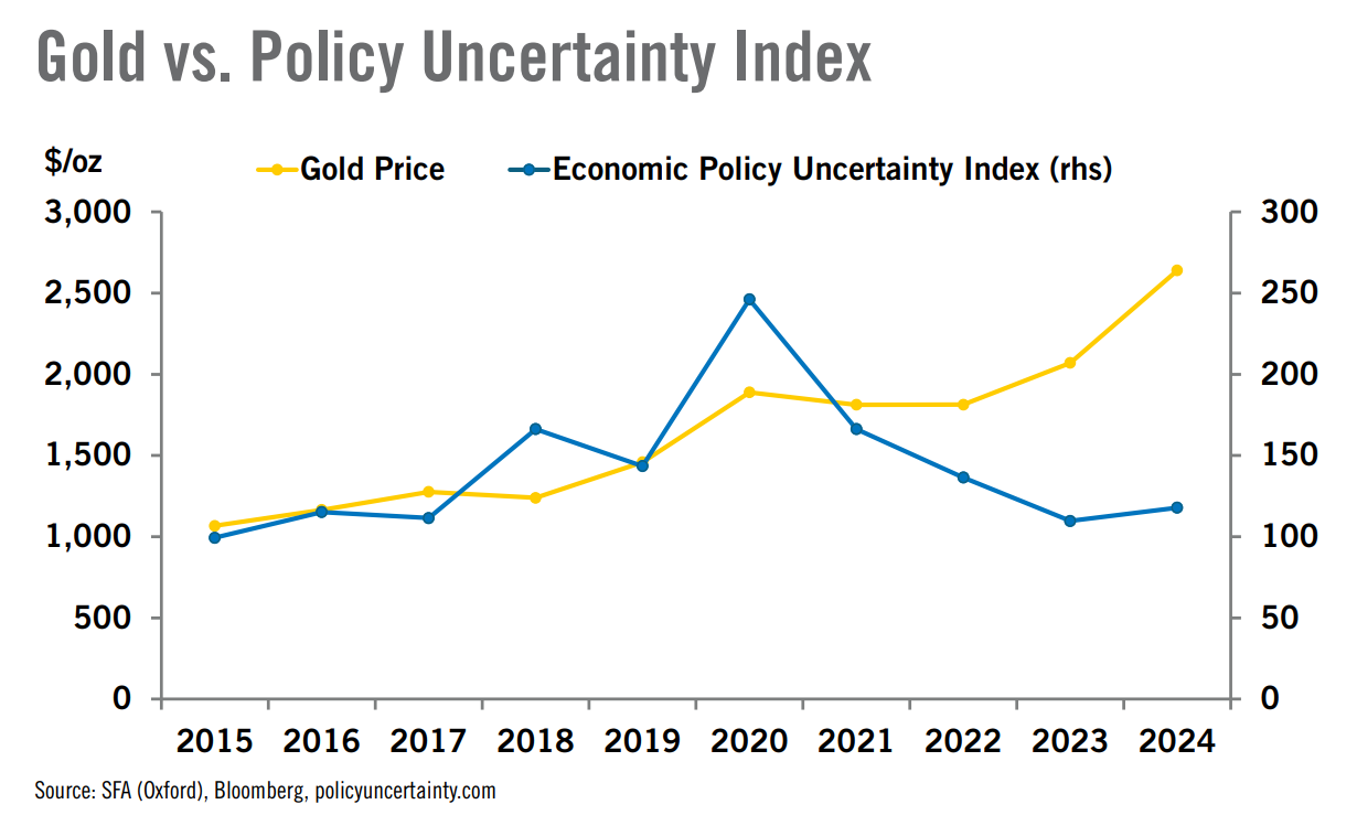 (黄金与经济政策不确定性指数对比趋势图)