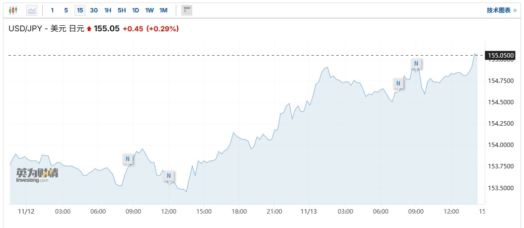周三,美元兑日元汇率涨0.29%,至155.05,为7月以来首次突破155这一关口。这加大了日本当局为延缓日元贬值而下场干预的风险。