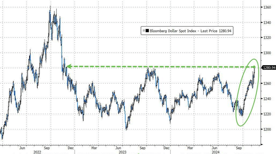 美元将在本季度特朗普就职前达到峰值,但明年可能仍将维持在高位。情绪很难比现在更利好美元,目前特朗普获胜,这对美元非常有利,但我们甚至还没有进入上半场。