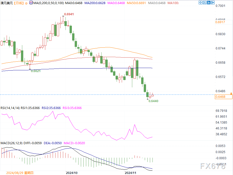 (澳元兑美元日线图,来源易汇通)北京时间11月18日10:05,澳元兑美元报0.6471/72