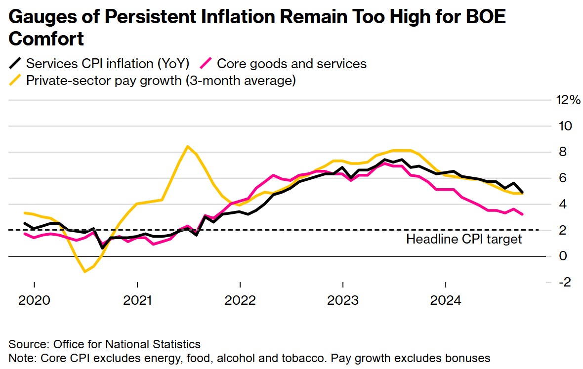 格林发表上述讲话的两天后,预计官方数据将显示,受能源价格上涨的推动,上个月通货膨胀率将回升至2%以上的目标。预计政策制定者将关注服务业,以确认潜在的价格压力正在缓解。英国央行和许多经济学家预计,服务业通胀仍将顽固地维持在5%左右的高位。