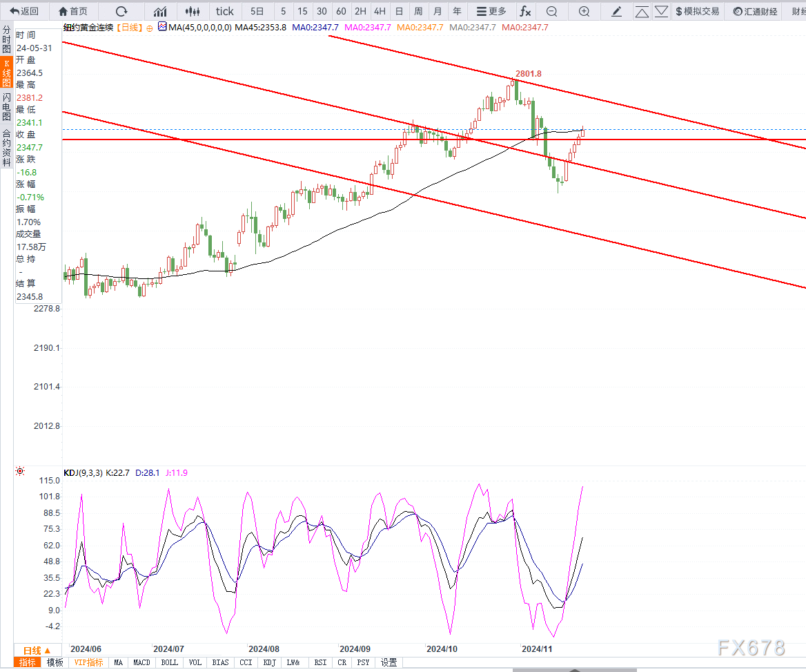中期角度上来看,美国初请失业金人数下降,美联储12月降息预期走低,都是不利黄金中期上涨的因素,所以短期等待避险情绪冷却之后的方向选择。