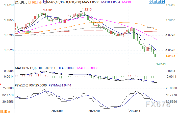 欧元兑美元日线图来源:易汇通北京时间11月25日14:20 欧元兑美元 报 1.0484/85。