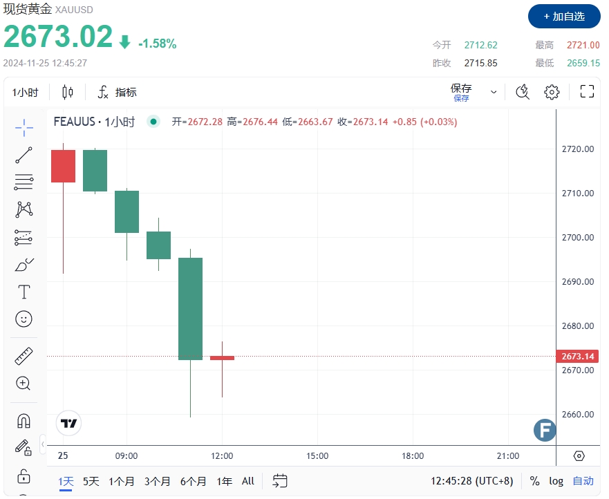 24K99讯 周一(11月25日),黄金价格日内猛烈下跌超过60美元,最低下探2659美元。美国当选总统特朗普(Donald Trump)告诉以色列总理内塔尼亚胡,他希望在2025年1月20日就任时结束加沙战争。地区消息人士周日称,以色列与真主党之间的停火协议非常接近。