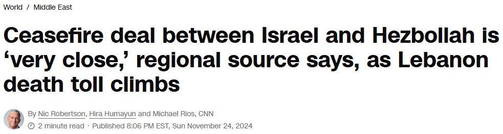 美国有线电视新闻网(CNN)引述一名地区消息人士透露,以色列与黎巴嫩激进组织真主党 之间的停火协议“非常接近达成”,尽管以色列袭击次数有所增加,导致自9月中旬以来黎巴嫩的死亡人数已超过一个严峻的里程碑。